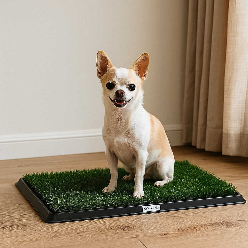 Fomenta buenos hábitos desde cachorro. El aroma natural del pasto incentiva su uso, creando una rutina limpia y efectiva desde el primer día.