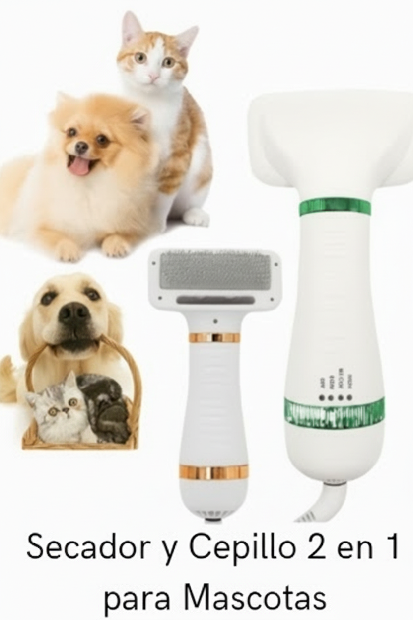 Secador y Cepillo 2 en 1 para Mascotas